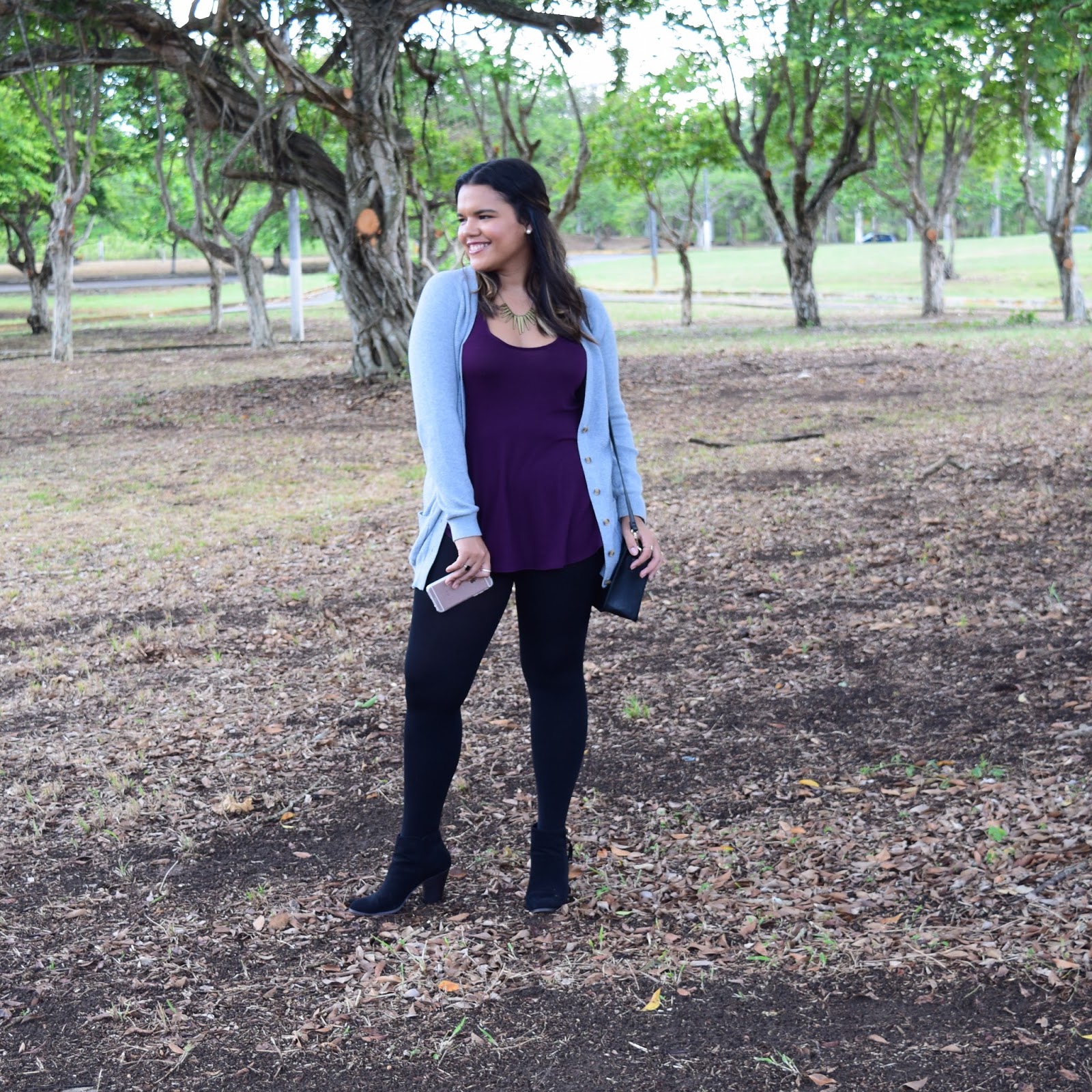 Top: Express // Cardigan: Gap // Tights: Express // Boots: Charlotte Russe // Bag: Forever 21
