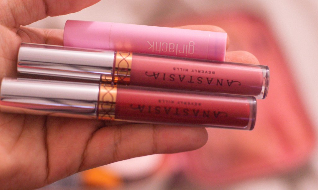 - Labiales – Anastasia Liquid Lipsticks: Bohemian & Dusty Rose (en navidad los tuvieron en BOGO 😁 en Sephora) / LipBalm – Girlactik: Jello Gloss Balm