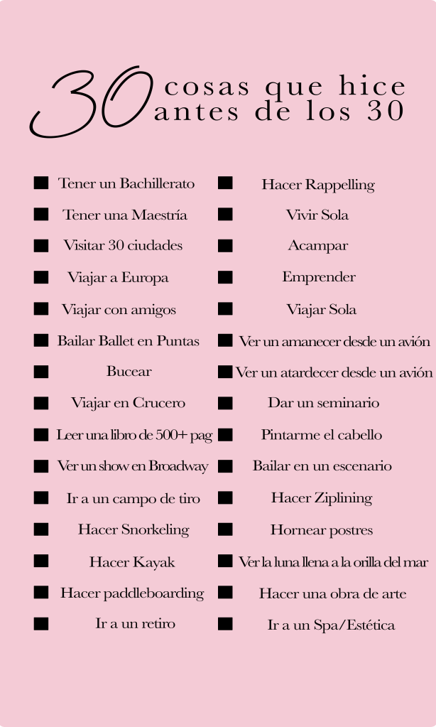 Quizás sí hay muchas cosas que hubiera querido hacer. Pero me parece aun más genial poder decir y recordar todas las cosas que sí pude hacer en estos 30 años.