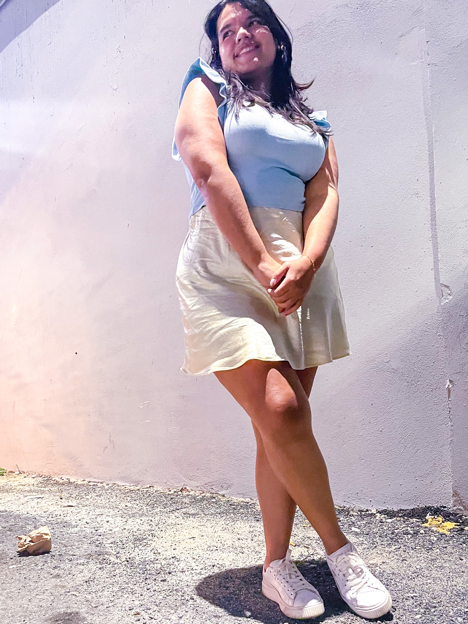 Detalles del Outfit (der): Top: Zara / Falda: H&M / Tenis: Puma-NordstromRack