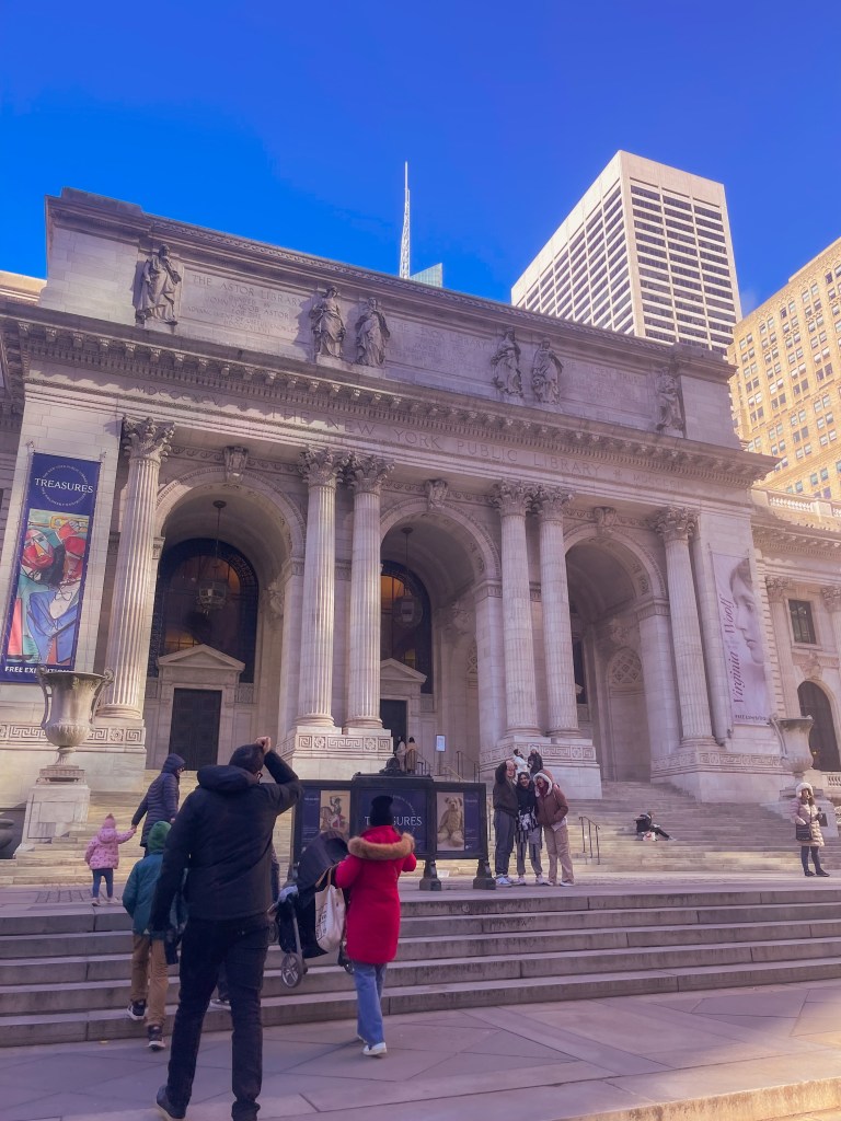 El vuelo de salida para NYC fue bien temprano en la mañana, así que llegamos a la ciudad a eso de las 11am. Como el check-in siempre es a las 3pm fuimos a desayunar y explorar el área. Dimos una vuelta por Bryant Park y su mercado navideño. Tenían muchas estaciones con productos bien bonitos. Luego pasamos por la Biblioteca Publica y fuimos hasta el Empire State. Una vez pudimos hacer check-in descansamos un rato y salimos hasta Grand Central Terminal, Time Square y cenar.