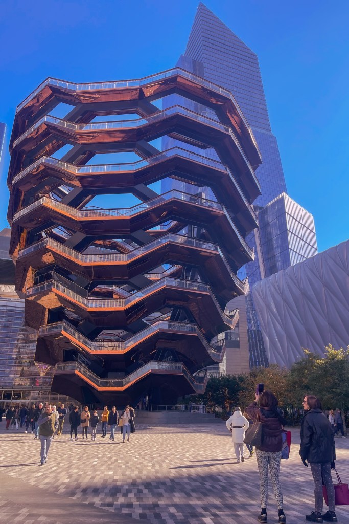 La agenda del tercer dia, era ir a ver el Vessel, caminar el High Line hasta él Chealsea Market y pasar por Soho. Cumplimos solo las primeras 3. Tuvimos un incoveniente, asi que viramos al hotel luego de pasar por el Washington Park. Pero volviendo al inicio de ese dia. A pesar que el Vessel no es tan alto como los rascacielos, se ve inmenso como quiera. Entramos a los Hudson Yards a ver las decoraciones. Tienen el centro comercial lleno de luces navideñas, se veia super bonito. El high line hasta el Chelsea Market tiene muchos puntos donde la vista a la ciudad es brutal. La primera vez (enlace) que lo vi fue un febrero cuando acababa el invierno, por lo que los arboles estaban sin hojas y había espacios con nieve. Verlo con los colores de otoño es cómo una experiencia distinta. A la hora que pasamos por el Washington Park era como la hora de salida de las escuelas y trabajos, por lo que estaba lleno de personas que solo pasaban un rato de descanso luego de un largo día.