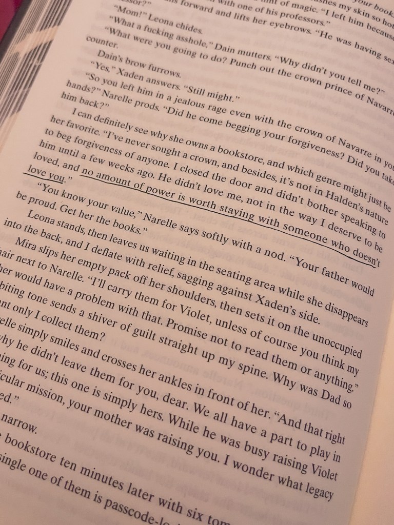 Me gusto mucho este libro, es una perfecta combinación entre romance y acción. Hubiera querido tener mas detalles del desenlace de la guerra. Un “spinoff” no seria mala idea, la verdad. Este libro tiene mas detalles oscuros que el primero. En adición a eso, los meses que lo lei las noticias en la vida real eran muy fuertes, por lo que terminarlo me tomó mucho mas tiempo que el primero. Creo que para las que no han leído mucha fantasia es una buena opción para comenzar.