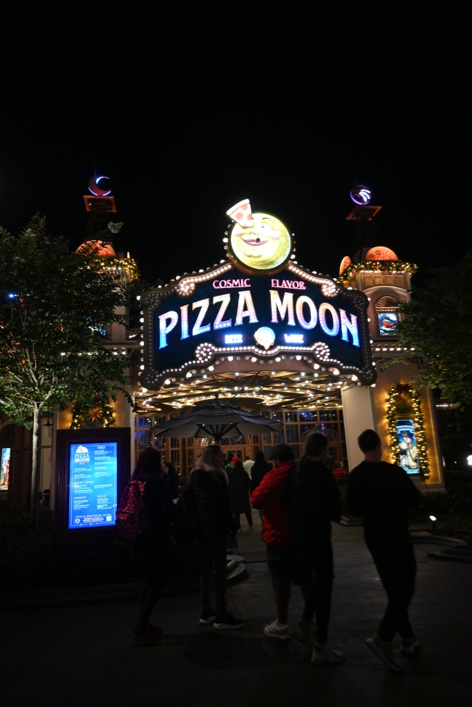 Referente a las comidas, Pizza Moon es un si o si. La pizza es rica y de buena calidad. Para mi que tengo estomago sensible no me cayó mal. Comimos también el pan de Dark Universe. Al final del día probamos un churro y como todavía era temporada navideña tenían uno con frosty de menta. Eso fue un NO rotundo jaja pero el churro estaba bueno.